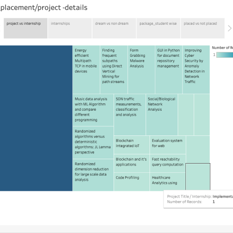 Dashboard of University of Hyderabad 2016-19 MCA placement has been shown in Tableau. Charts and Graphs have been used to understand it better.